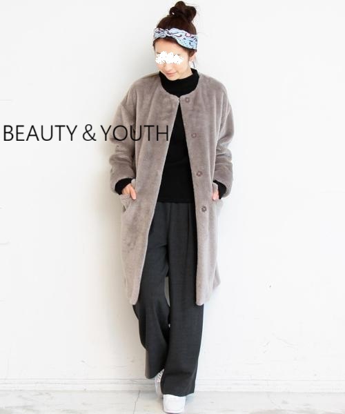- ユナイテッドアローズ ビューティーアンドユース BEAUTY&YOUTH エコファーノーカラー コート M