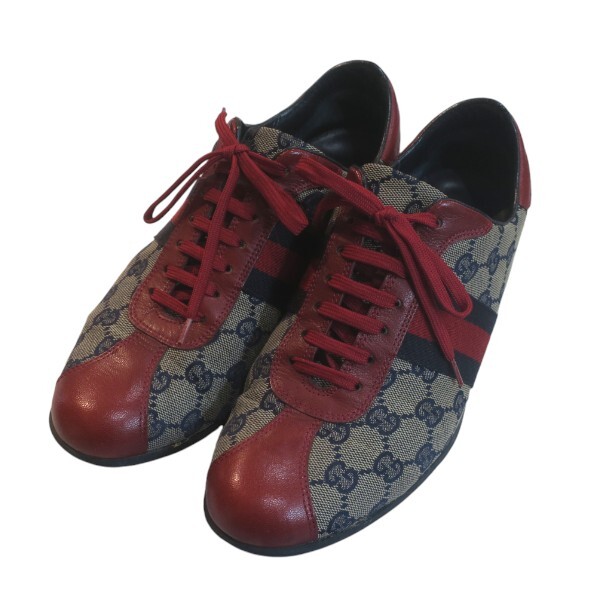 > GUCCI グッチ 117706 レザー×キャンバス スニーカー #37 1/2 約24cm向き 【送料無料】中古品 used AB