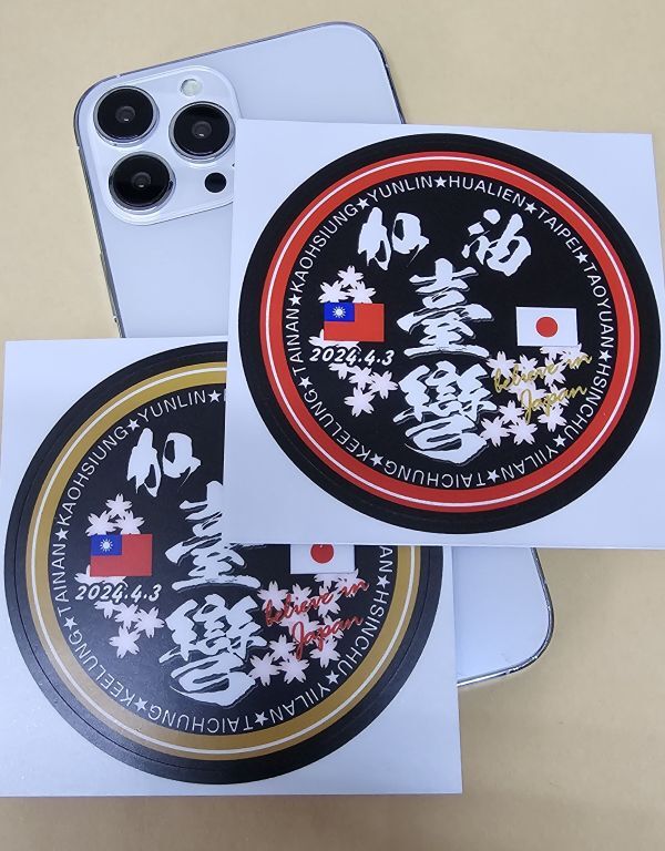 - 加油 台湾 地震応援ステッカー黒 台北・花蓮