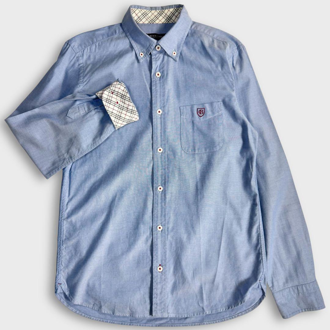 > 美品 ブラックレーベル クレストブリッジ 長袖シャツ ブルー ノバチェック BLACK LABEL CRESTBRIDGE メンズ サックス ボタンダウン