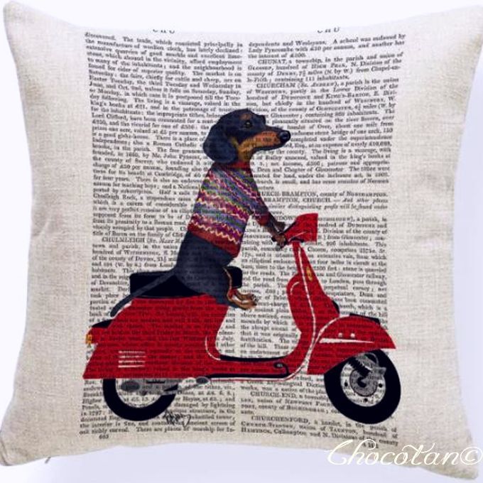 - 【送料無料】ダックスフンド a30 赤 コットンリネン 45x45cm クッションカバー【新品】