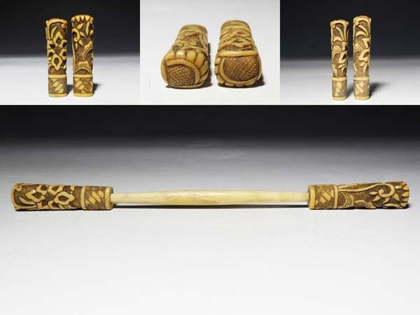 - 【桃】アンティーク髪飾り:鹿角彫花紋様笄 浅草スクール