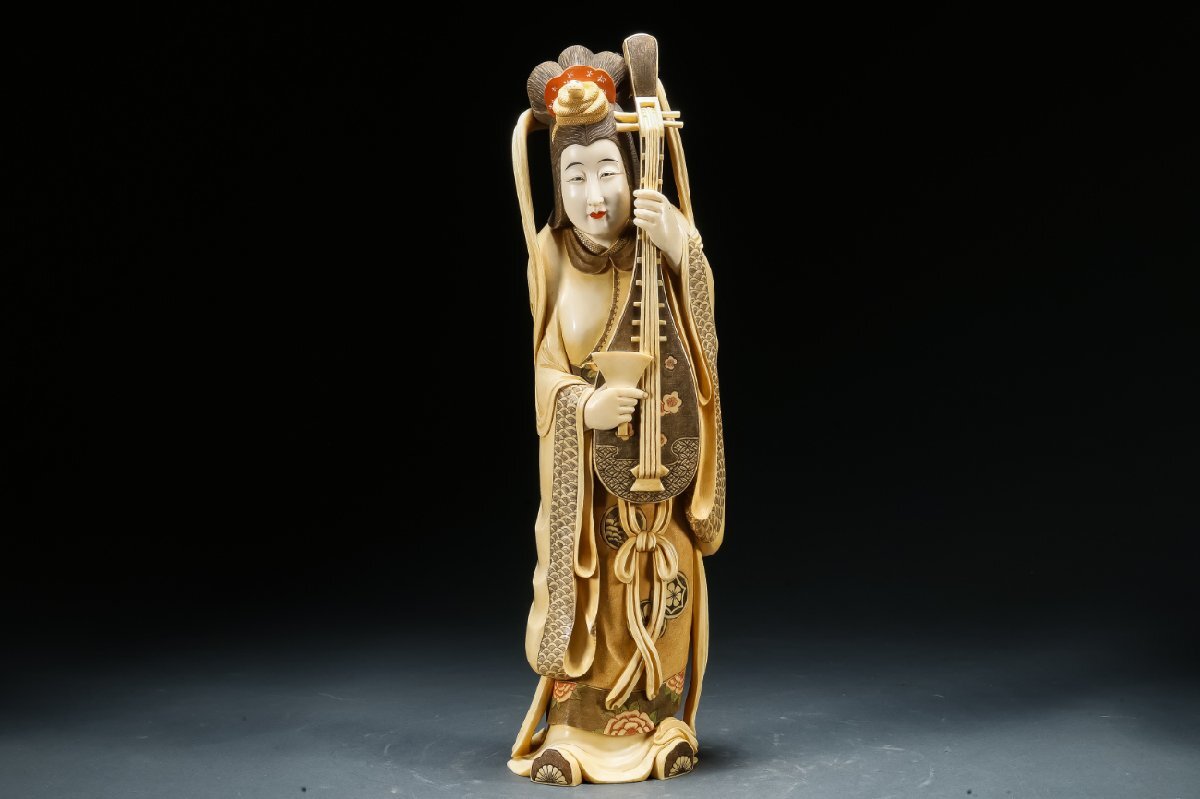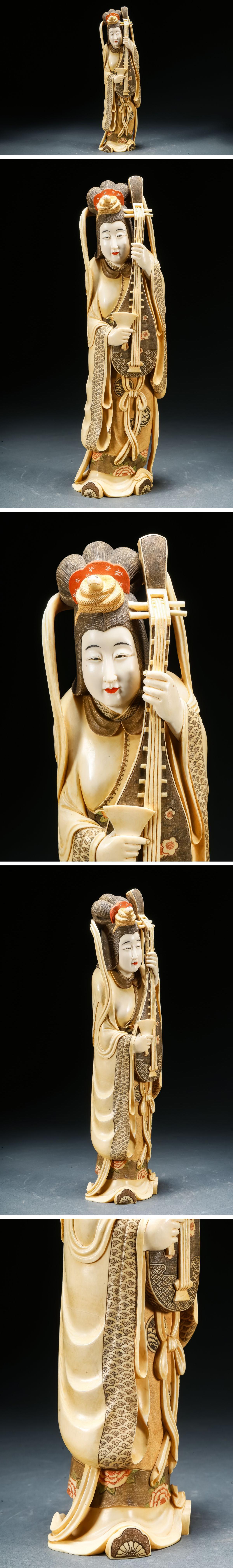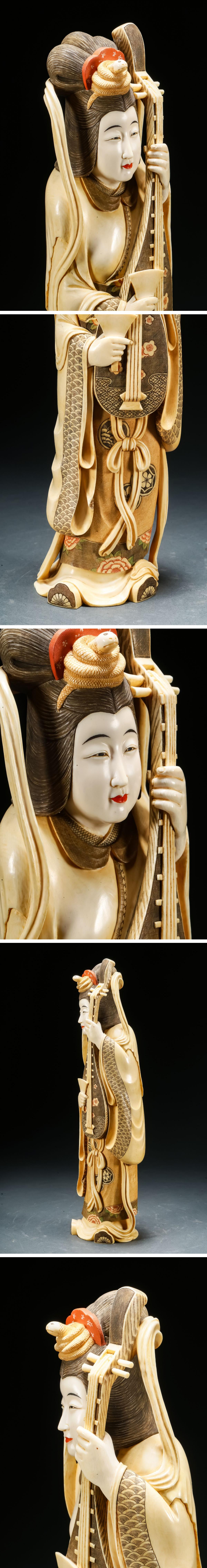 - 【雲錦】某有名オークション購入 時代物 特殊白材 巨大弁財天造像 古置物 古擺件 古美術 時代コレクション7L9-27