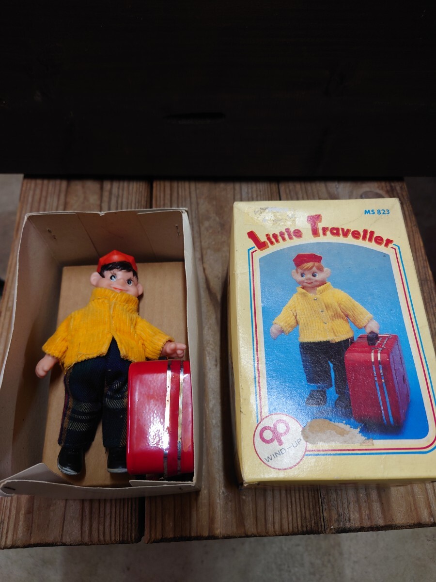 - ゼンマイ 人形 ビンテージ 箱付 昭和レトロ 当時物 動作確認済 カバン ブリキ