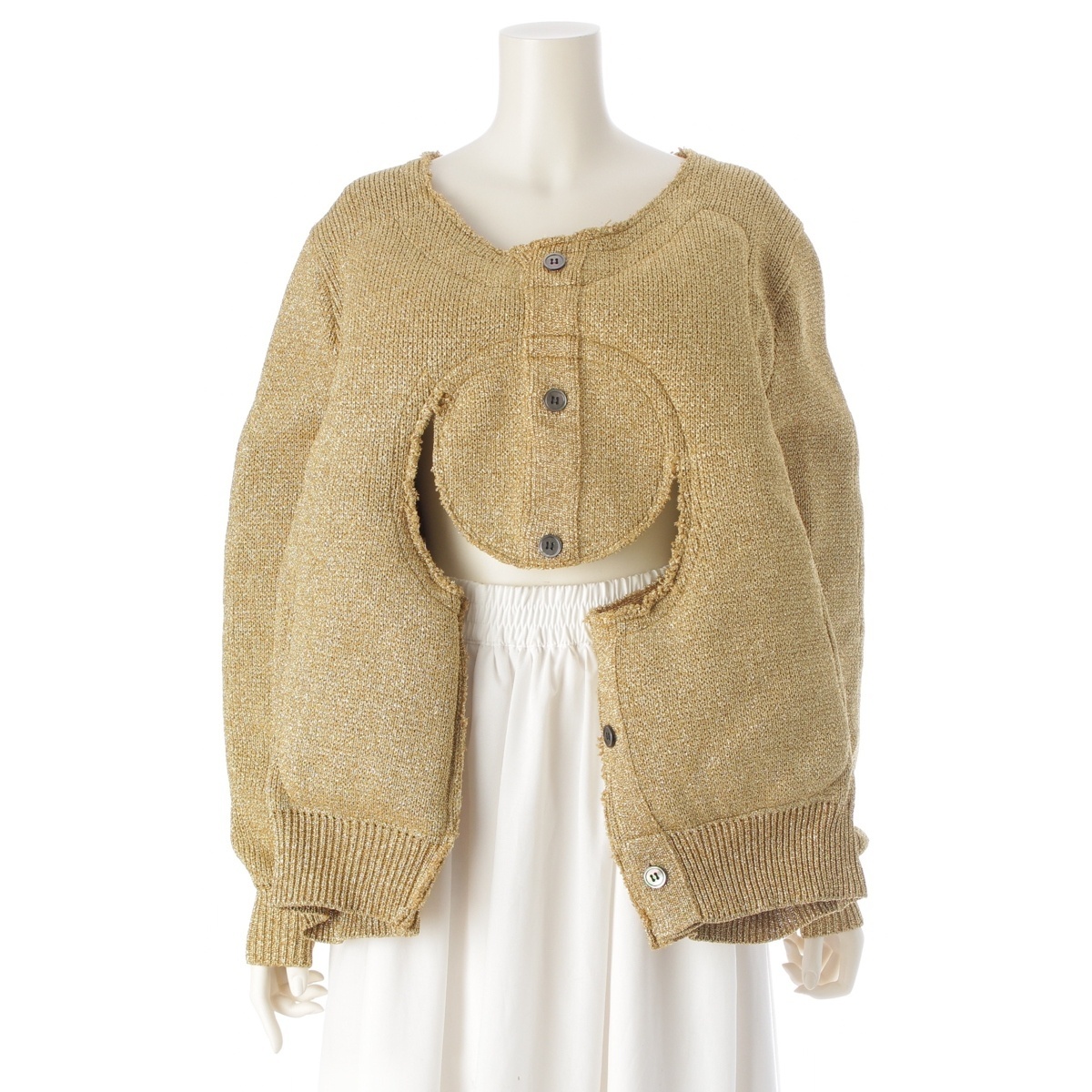 > コムデギャルソン AD2018 ナイロン混 変形 ニット GB-N014 ゴールド XS【中古】