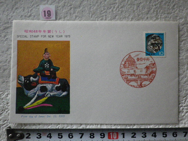 - FDC 年賀切手 1972年 1貼1消 説明書有 郵政弘済会●19●同梱大歓迎
