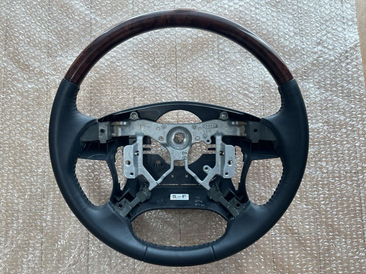 - 新車外し 純正 エスティマ ハンドル ステアリングホイールASSY ウッドコンビハンドル ウッド調 木目調 茶木目 本革 レザー ダークグレー