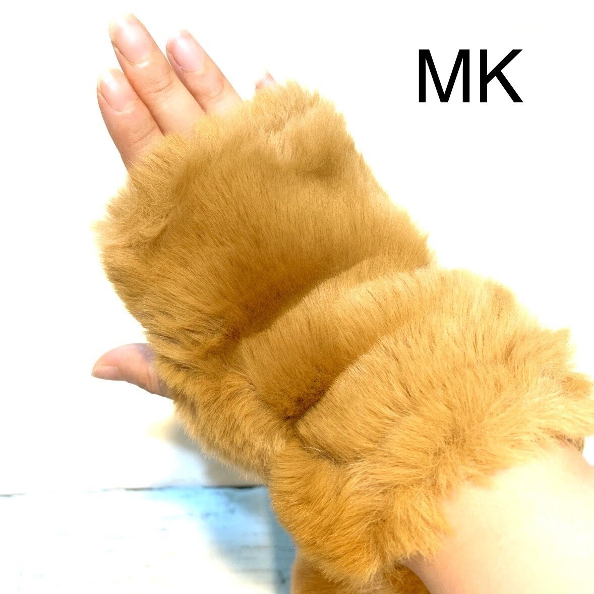 - 激かわ ファー付き 指なし 手袋 レディース ニット手袋 グローブ ムートン MICHAEL KORS MKマイケルコース 新品 ブランド ロゴ エコファー