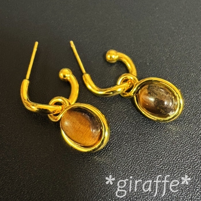 > B680 匿名配送 ピアス レディース タイガーアイ 虎目石 ゴールド s925 リングピアス C型 フープピアス 揺れる