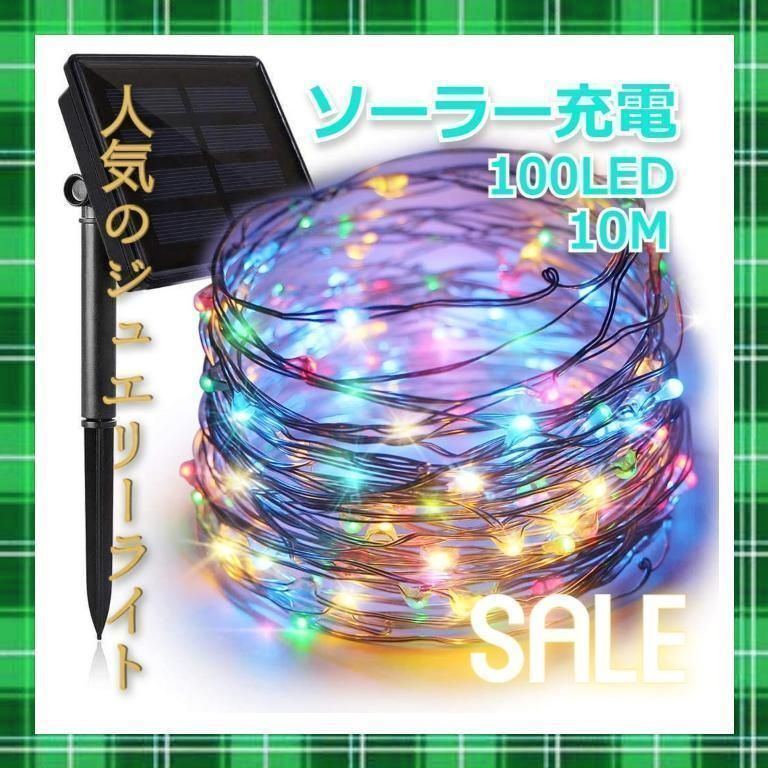 - ★売れ筋★ ソーラー充電 イルミネーションライト ワイヤー 100球 10m カラフル