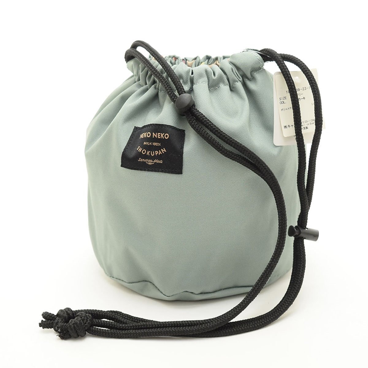 > ◇539917 未使用品 Samansa Mos2 サマンサモスモス SM2 リバーシブル巾着ショルダー ねこねこ食パン ナイロン バッグ ポーチ カーキ