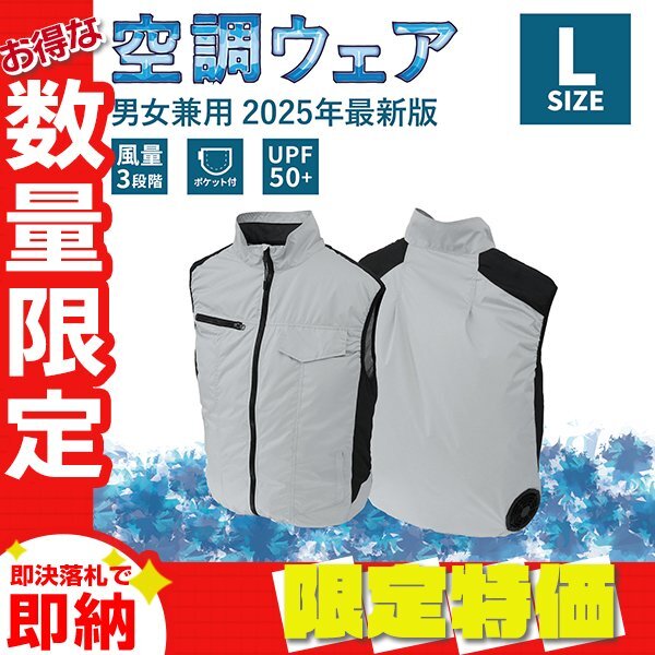 - 【限定セール】空調作業服 空調ベスト 空調ウェア ファン付きウェア 3段階風量調節 強風送風 UVカット 保冷剤ポケット 作業服 夏 Lサイズ