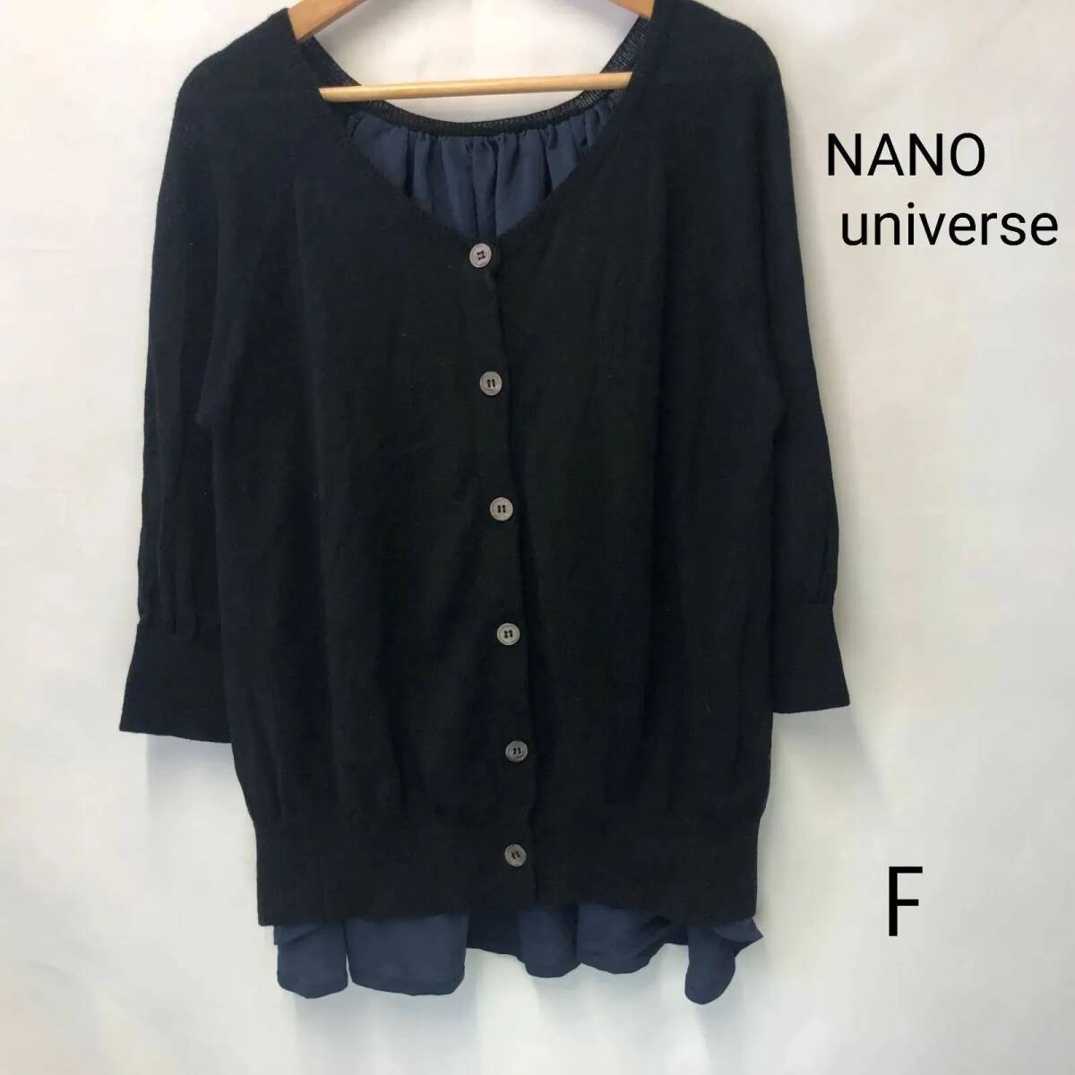 - NANO universe ナノ・ユニバース レディース カーディガン 長袖 ブラック Fサイズ