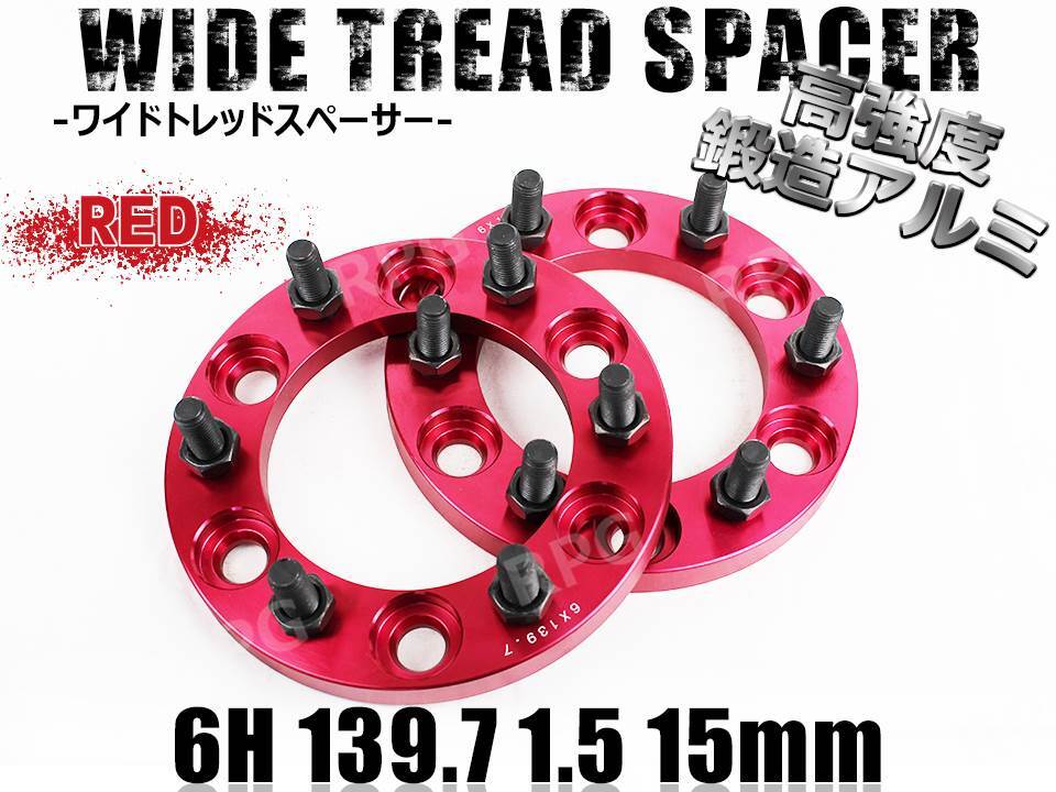 - FJクルーザー 15系 ワイトレ 6H 2枚組 PCD139.7-1.5 15mm ワイドトレッドスペーサー (赤)