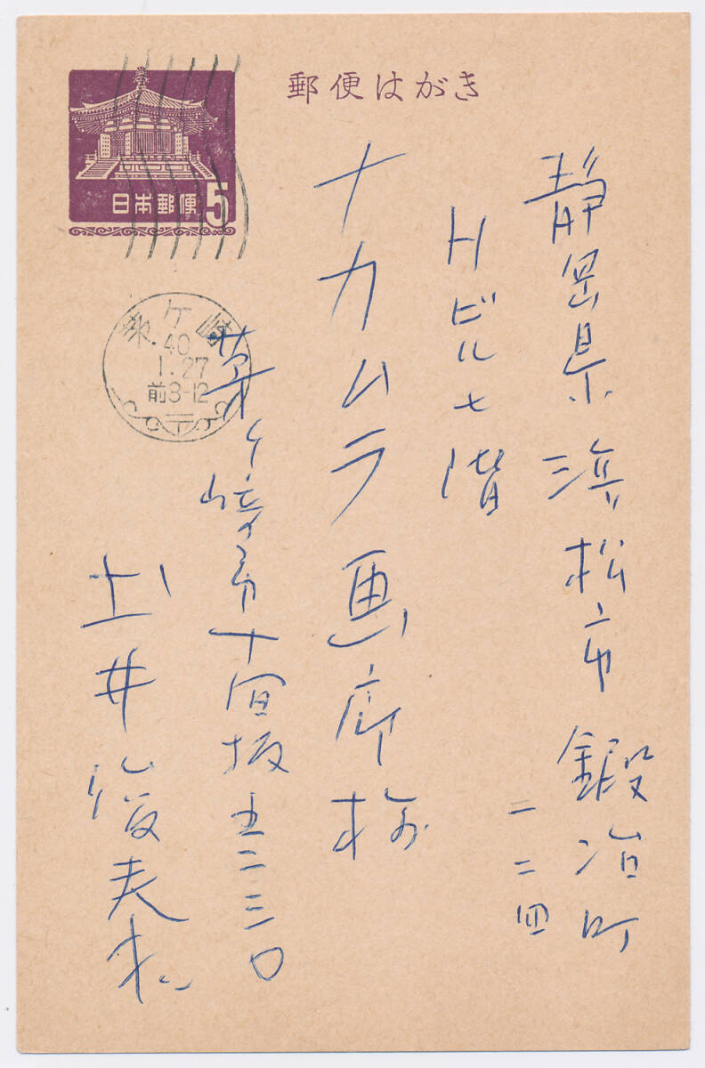 - ■土井俊泰 直筆葉書/昭和40年、ボールペン書き、洋画家、真作