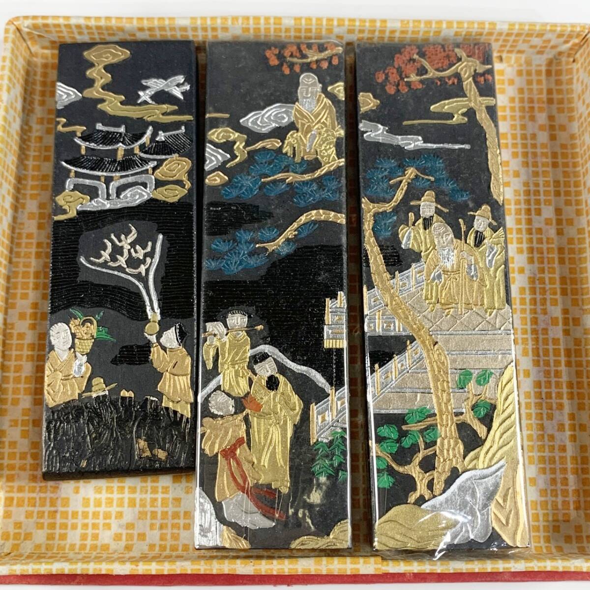 - usH-3352【中国墨】3本セット 内2本は未使用 絵柄と文字入り 約83g 古墨 レトロ 現状品