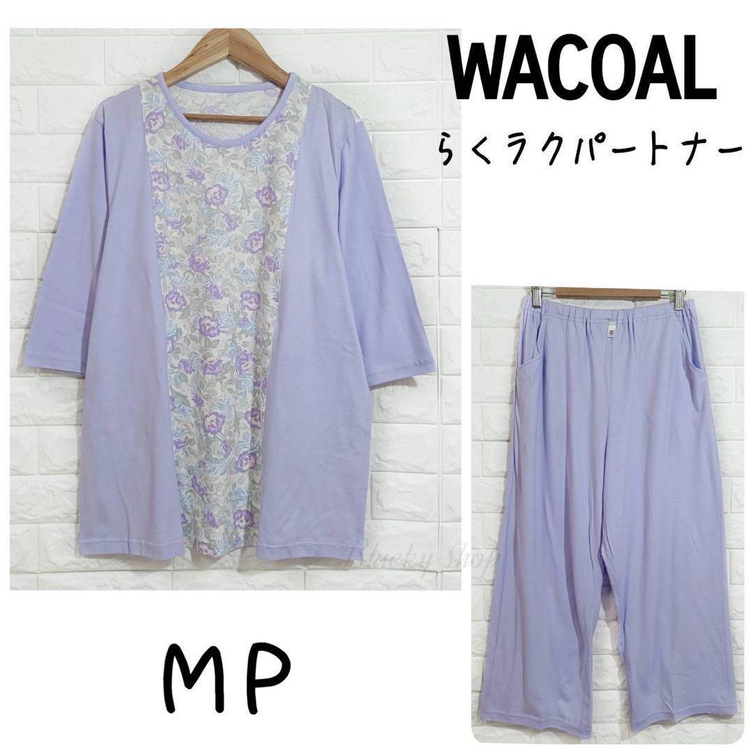> Wacoal ワコール らくラクパートナー パジャマ 上下 セットアップ 未使用 タグ付き パープル MP DNL268 小花柄 ルームウェア 綿100%