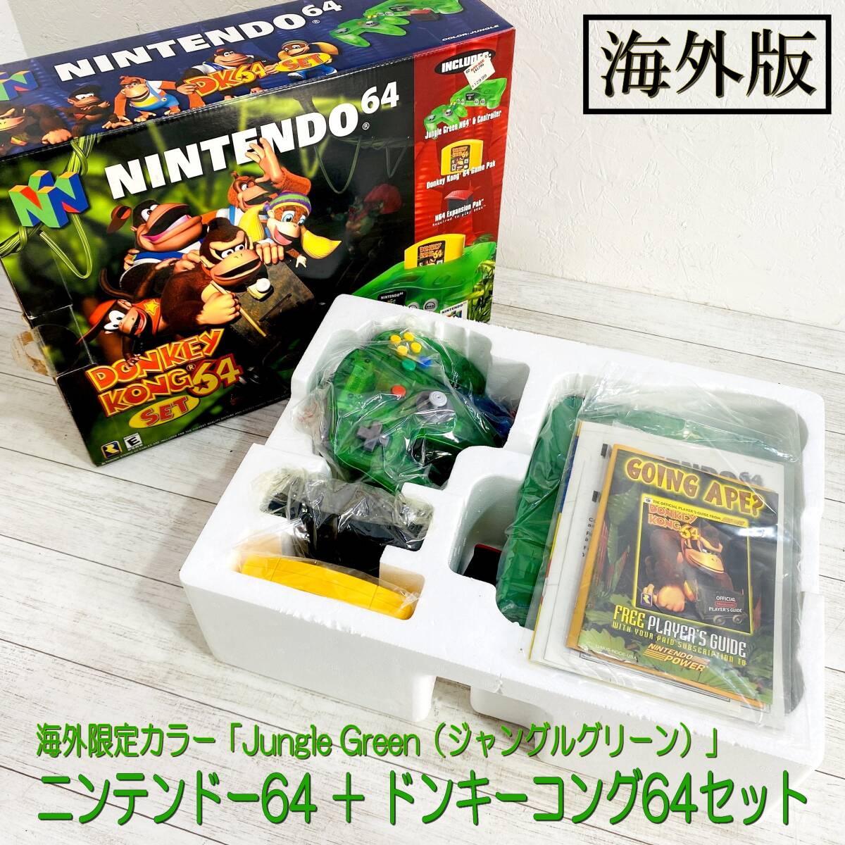 海外版限定の透明グリーン筐体が印象的な、希少なドンキーコング64セットです。