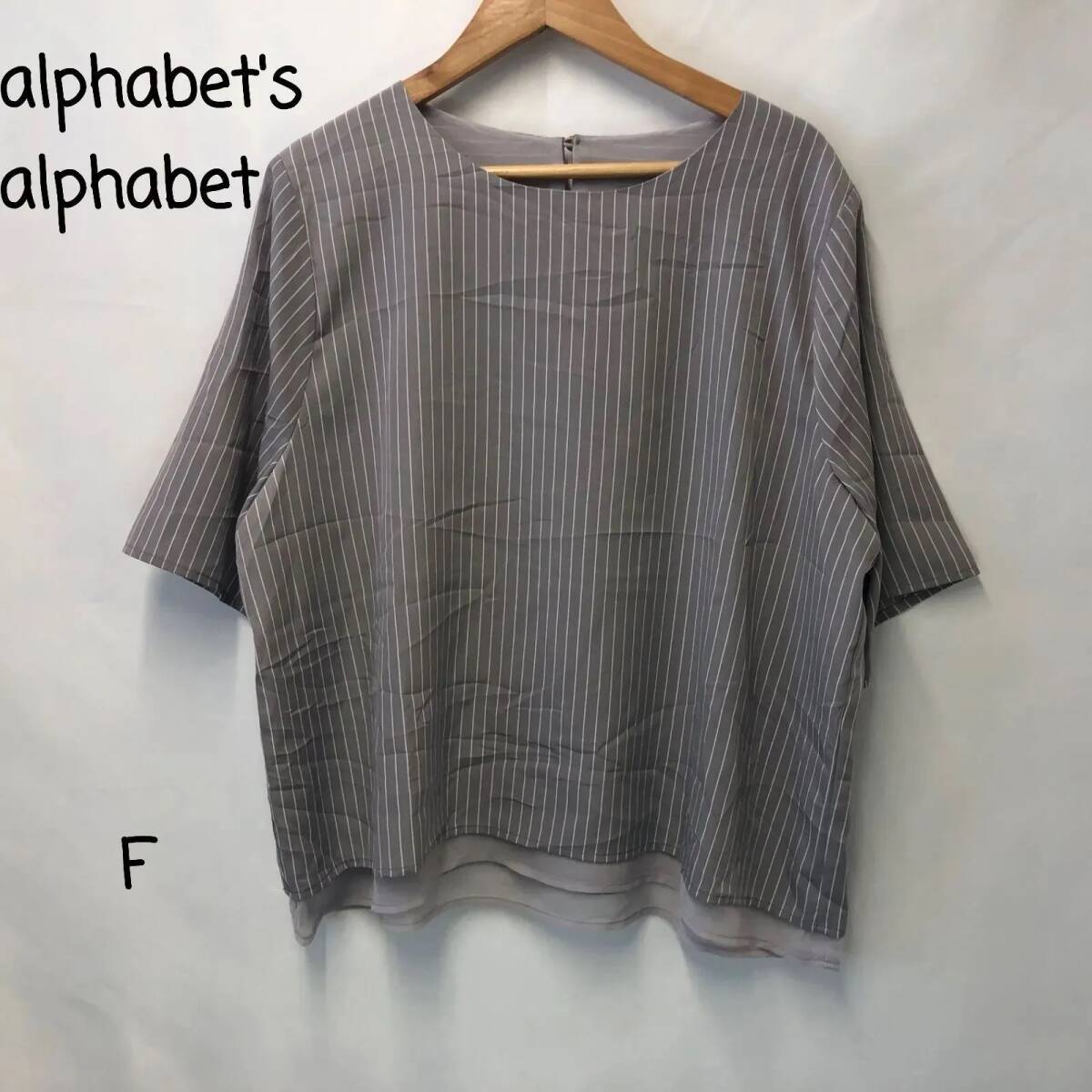 - alphabet's alphabet アルファベッツアルファベット レディース ブラウス 半袖 ノーカラー グレイ ストライプ Fサイズ
