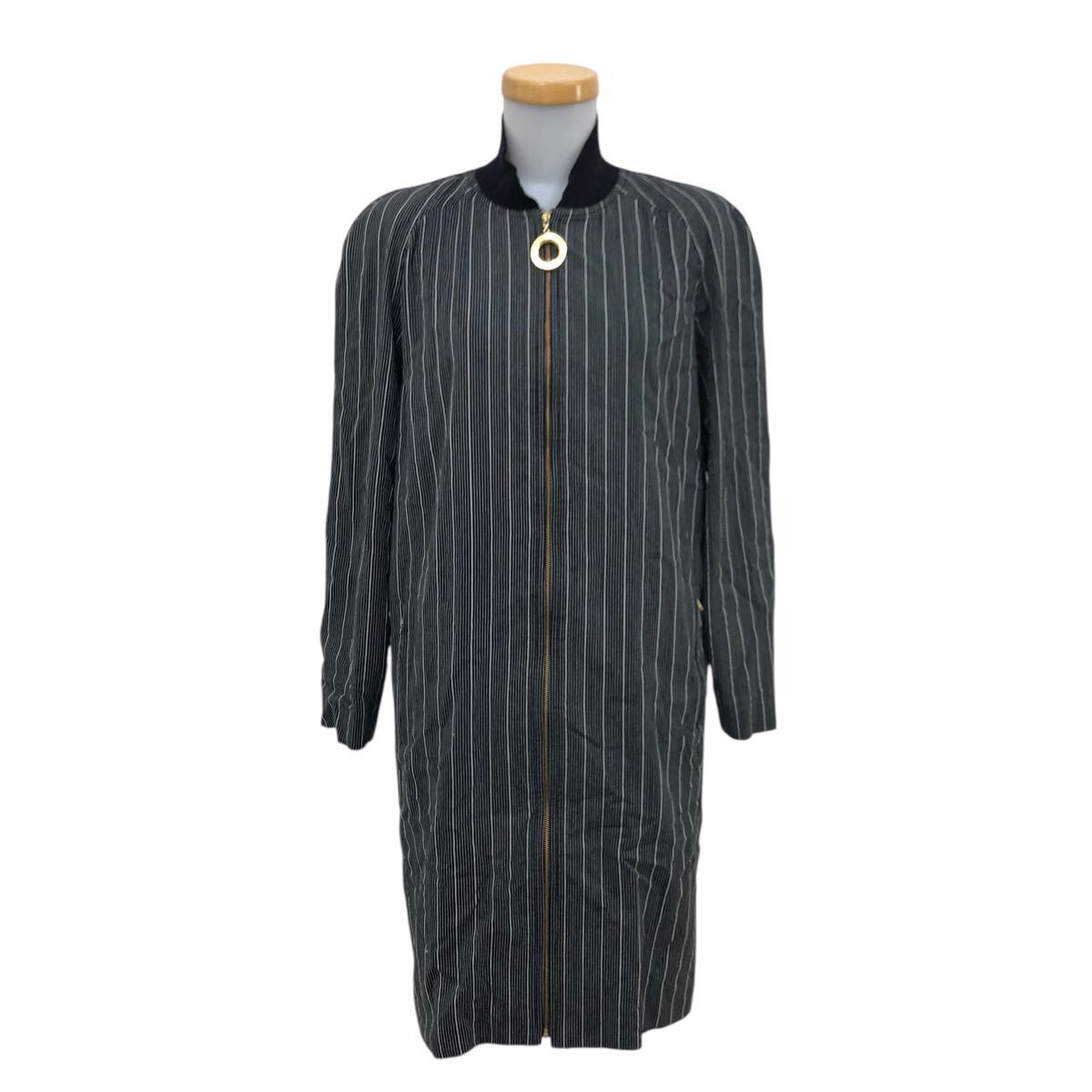 > 10m665-20 Miss Dior ミス ディオール ストライプ 柄 ジップアップ 薄手 コート ロングジャケット アウター ブラック レディース L