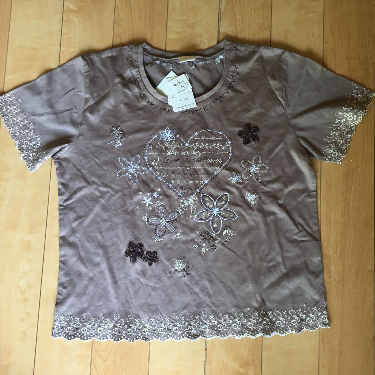 - タグ付き フォーウーマン 刺繍カットソー 231-1-48 レディース M~L ブラウン 花柄