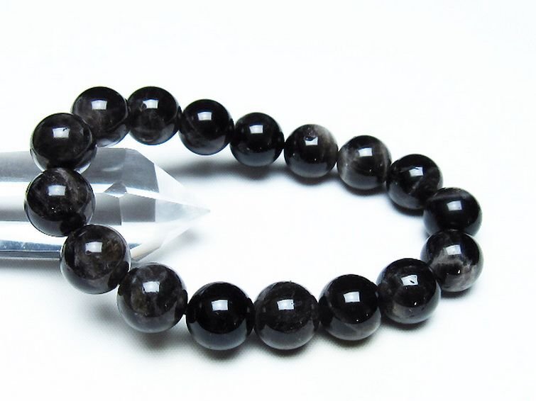 - 銀座東道◆極品天然AAAAAモリオン 純天然 黒水晶 ブレスレット 12mm [T112-7187]