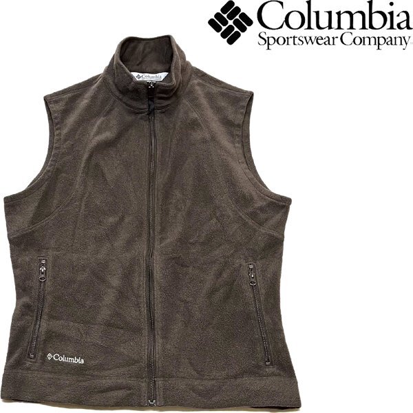 - 1点物◆コロンビア茶フリースベスト中古ジレ古着レディースLメンズOKアメカジ90sストリートスポーツ中古アウトドアジャケット登山362170