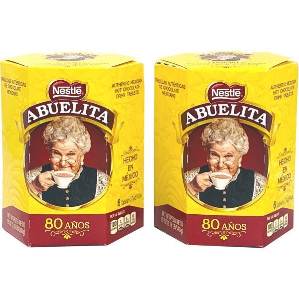 ABUELITA アブエリータ メキシカン ホットチョコレート 12タブレット Nestle ABUELITA 12tablets 本場メキシコのホットチョコレート。 ご存知でしたか?チョコレート発祥の地はメキシコとのことです。 そのメキシコで飲まれている人気の飲み物がアブリエータ。 1つのタブレットで4カップのホットチョコレートが作れます。 温めればフレッシュなフルーツと一緒にチョコレートフォンデュも楽しめるユニークなチョコレート。 シナモン入りの素朴な味はからだをあたためてくれます。 コレステロールなしのチョコレートです。 ■セット内容 合計12タブレット アブエリータ 6タブレット(540g) 2個 ■作り方(4人分) ◇ホットチョコレート◇ なべにアブエリータタブレット1個と4カップの牛乳かお湯を入れてゆっくりあたためながら溶かします。 砂糖を加えてお好きな甘さに調節します。 (一人分を作る場合は、タブレットを1/4に割って1カップの牛乳かお湯を加えてください。) ◇チョコレート オレンジ フォンデュ◇ 生クリーム(3/4カップ)をなべで中火であたため、沸騰する直前になったらアブエリータ(2タブレット)を加えて焦がさないように混ぜながら弱火で加熱します。 アブエリータ完全に溶けたところで火からおろしてオレンジピール(小さじ1)を加えて出来上がり。 温かいうちに新鮮なフルーツやパンをつけてフォンデュを楽しみます。 ■主な材料 砂糖、チョコレート、大豆レシチン、ベジタブルオイル(パーム、ナッツ)、人工香料 ■アレルギー情報 大豆 *小麦、牛乳、卵、ピーナツ、木の実を加工している工場で製造されています。