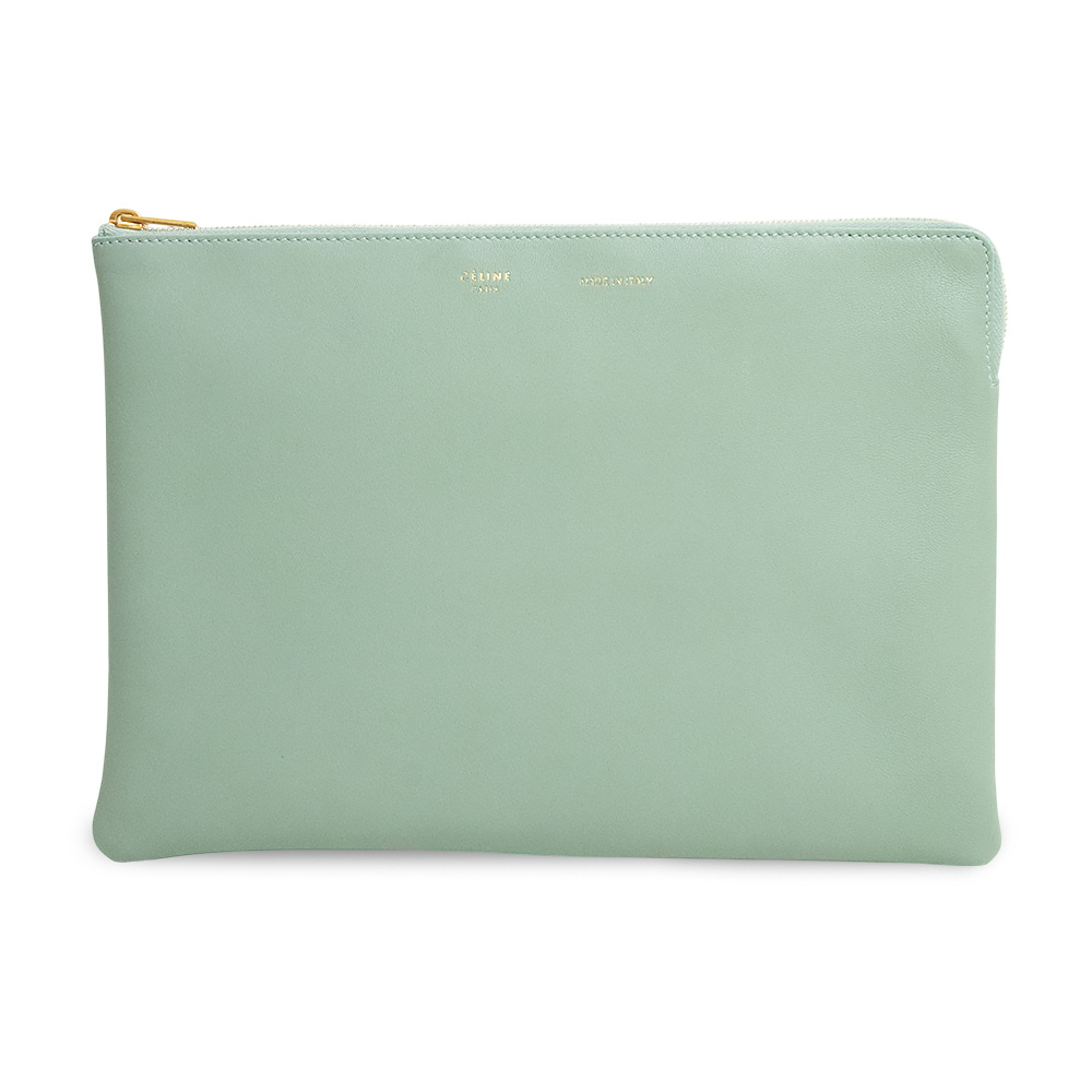 - (未使用 展示品)セリーヌ CELINE ソロ クラッチポーチ バッグ ラムスキン レザー セラドン ダークミントグリーン ゴールド 104003A9Q