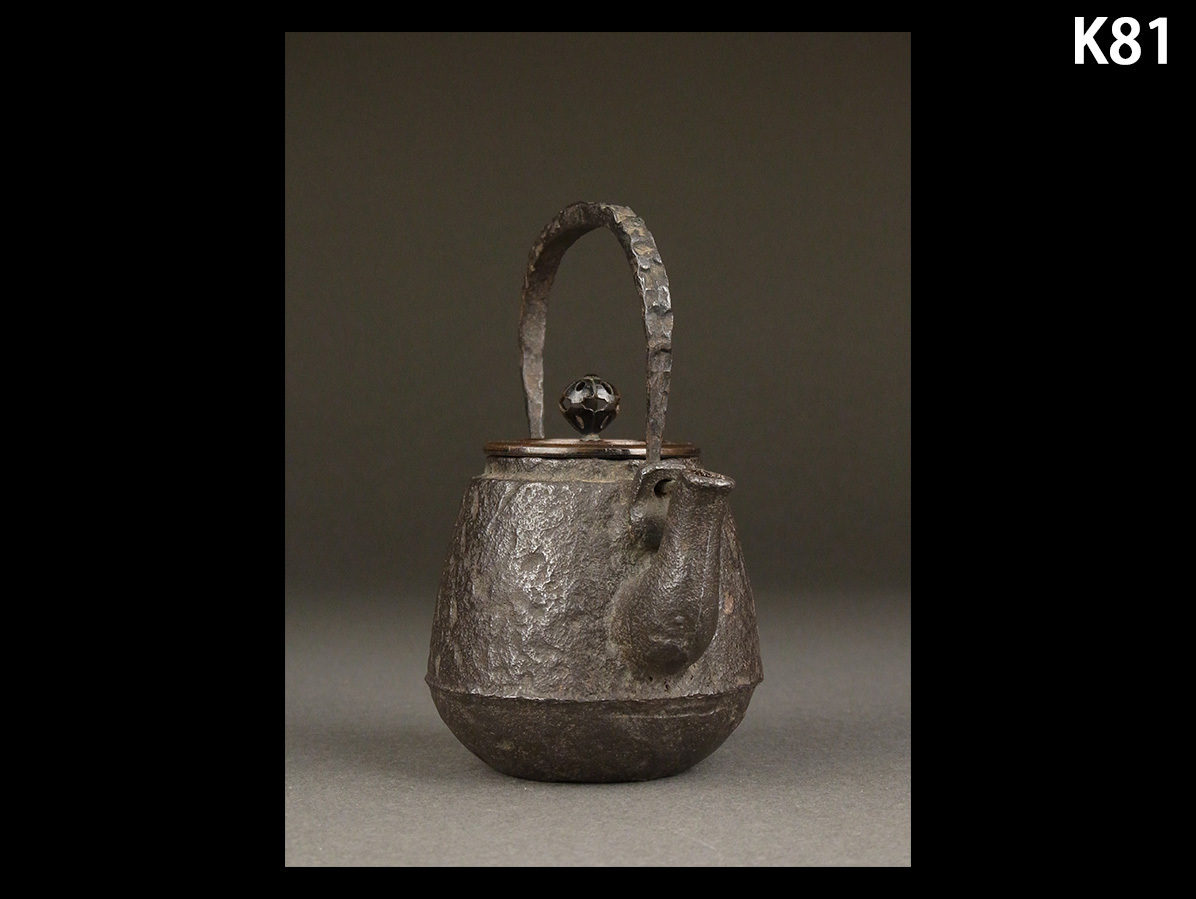 - K81☆時代煎茶道具 釜師 作家物 唐銅蓋 極小 鉄瓶/龍文堂 鉄壺 湯沸 急須