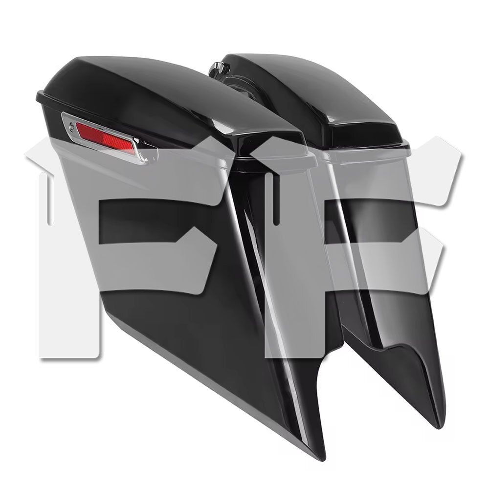 - 送料無料.. ハーレー ツーリング 14-24 5インチ ストレッチ サイドバッグ 拡張ハードサドルバッグ クロームラッチ付き パーツ カスタム