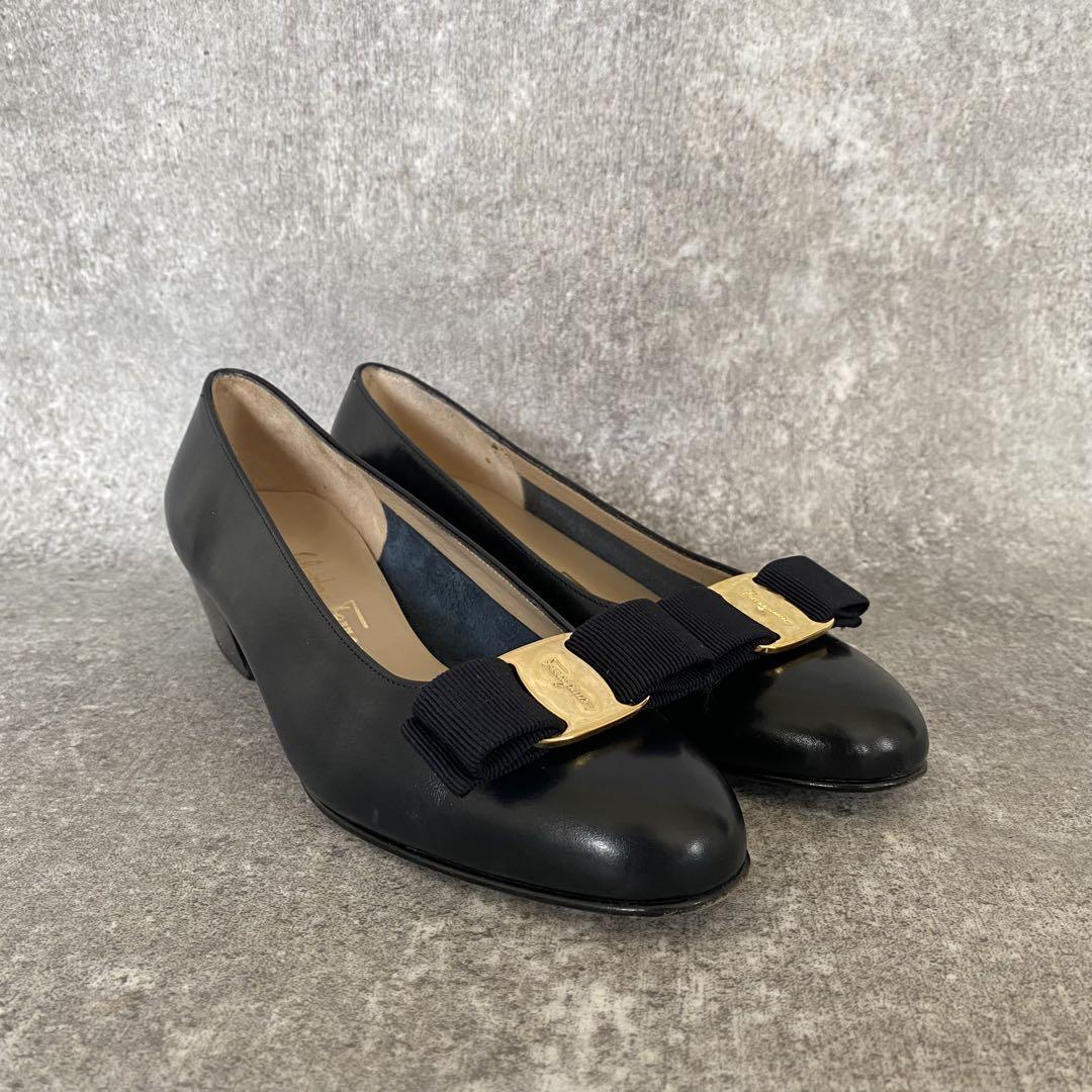 - フェラガモ ローファー パンプス ヴァラリボン レザー ネイビー