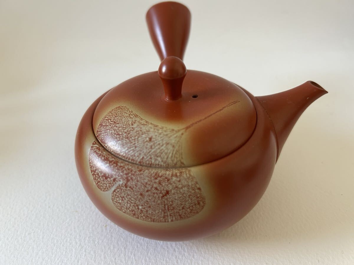 - 常滑焼 急須 【高資】朱泥 銀杏柄 煎茶道具 茶注 横手急須