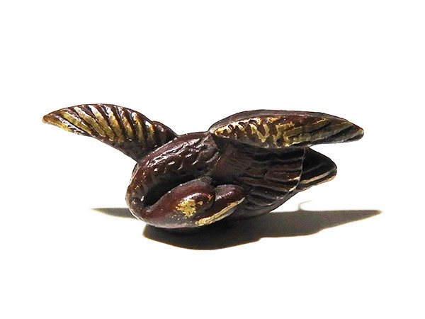 - 【桃】提げ物:金工銅地鍍金銀象嵌雁煙草入れ飾り金具