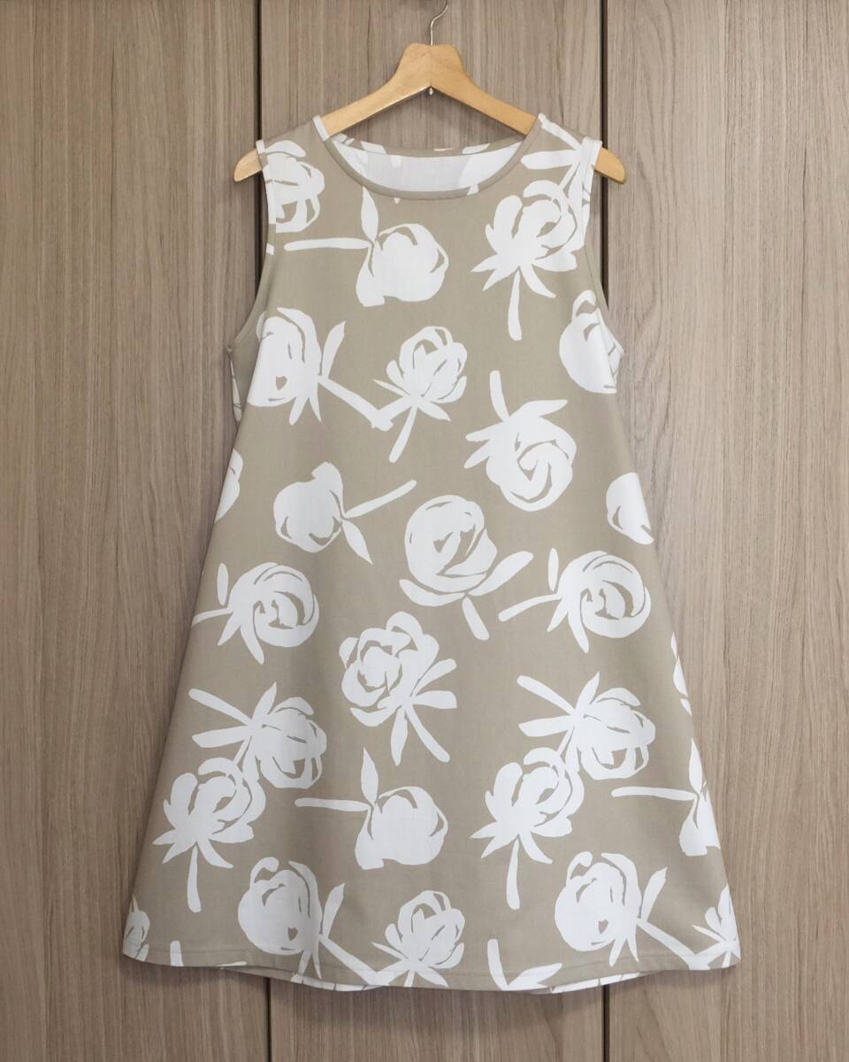 - ♪送料無料 ハンドメイド 綿 起毛コットン 花柄 ベージュ ノースリーブワンピース♪