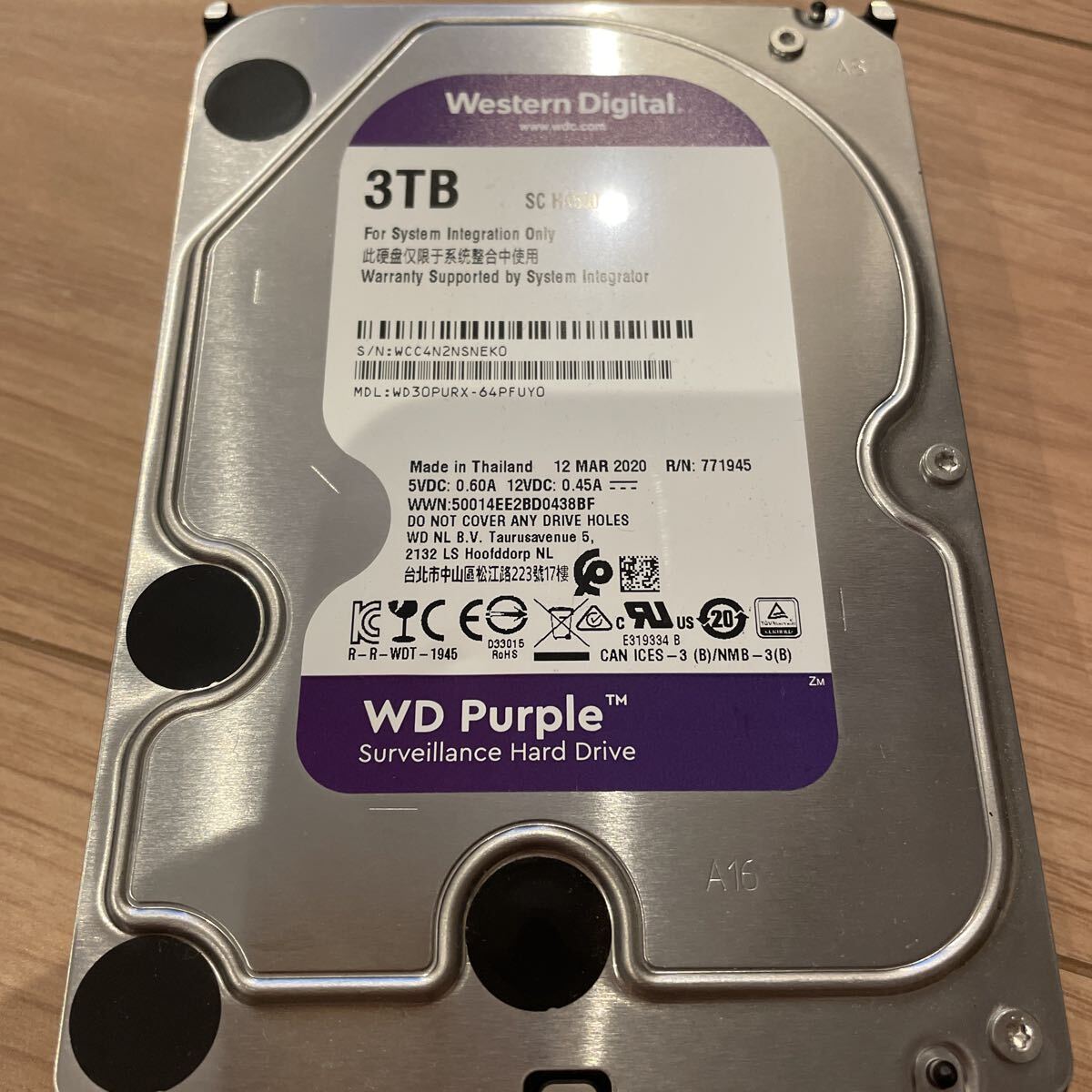 - 【高耐久性】3TB Western Digital WD30PURX 3TB HDD 健康状態「正常」 Purple