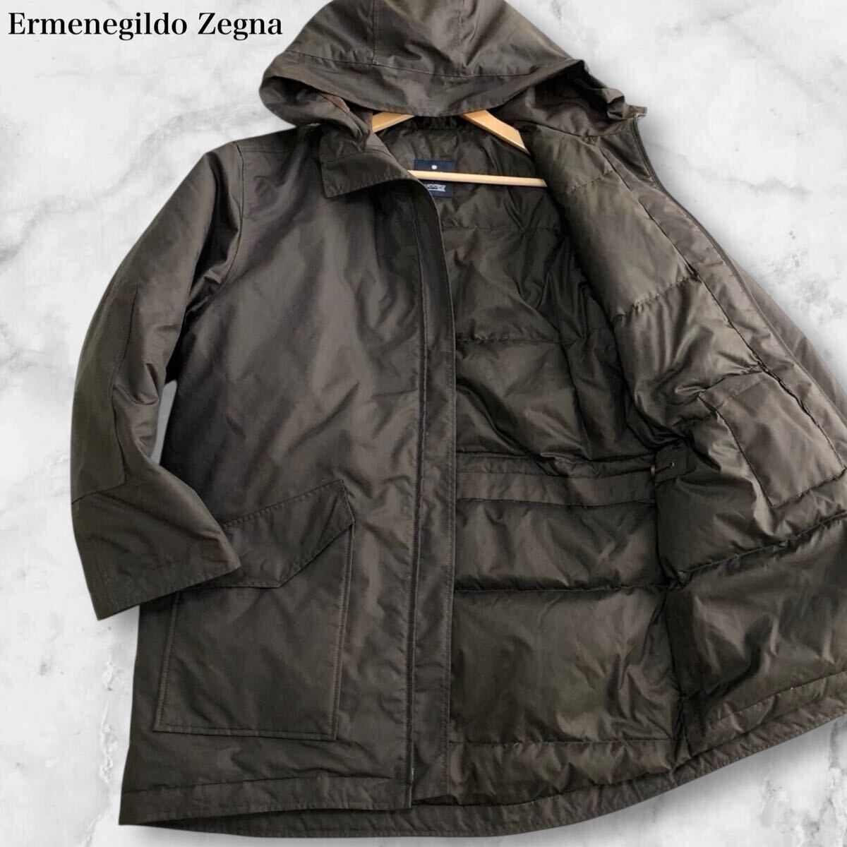 > 美品/XL相当●Ermenegildo Zegna エルメネジルド ゼニア MICROTENE 中綿 フーデットジャケット ジップパーカー ブルゾン ブラウン系 メンズ