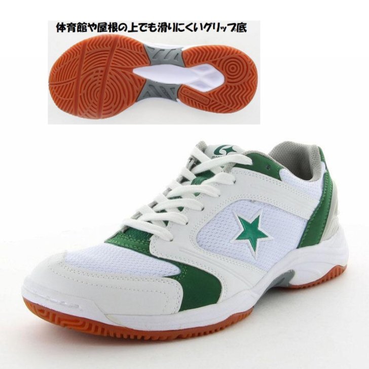 - 滑りにくい底 ムーンスター 22.5 体育館シューズ MS1100T 白/緑 n インドアスポーツ メンズ レディース ジュニア 校内履き 屋根工事 上履き
