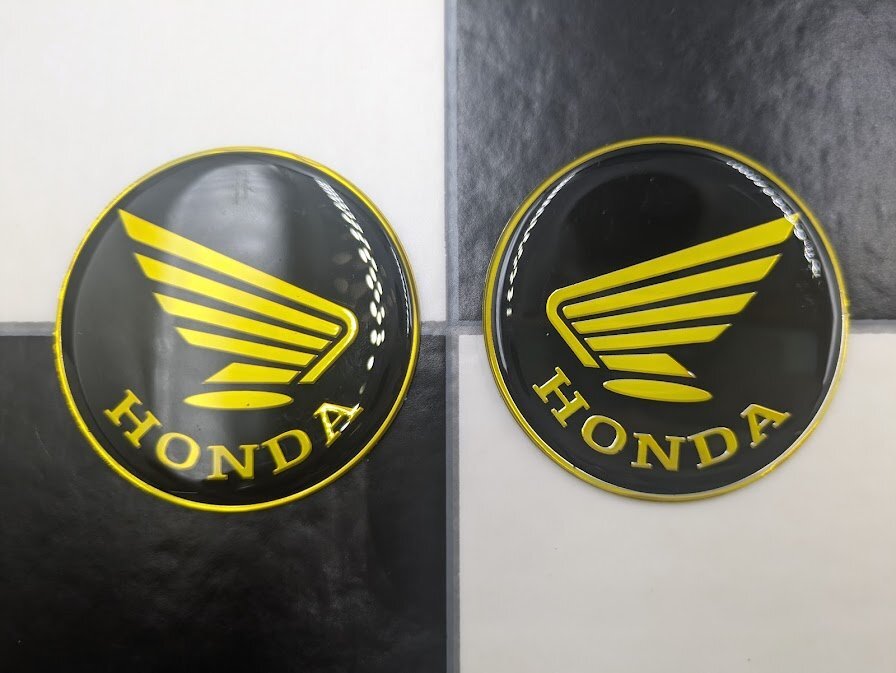 > ホンダ ウィングマーク丸型 立体タンクエンブレム 黒/ゴールド 2枚SET 検/ CB400F FOUR ハンターカブ クロスカブ モンキー CT125 CB250N