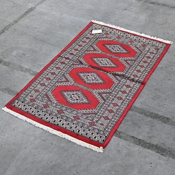 > 新品 未使用 パキスタン製 手織り ウール絨毯 ラグ ボハラ柄 ギュル文様 ハンドノット 羊毛 カーペット マット ホテル 応接室 P-113