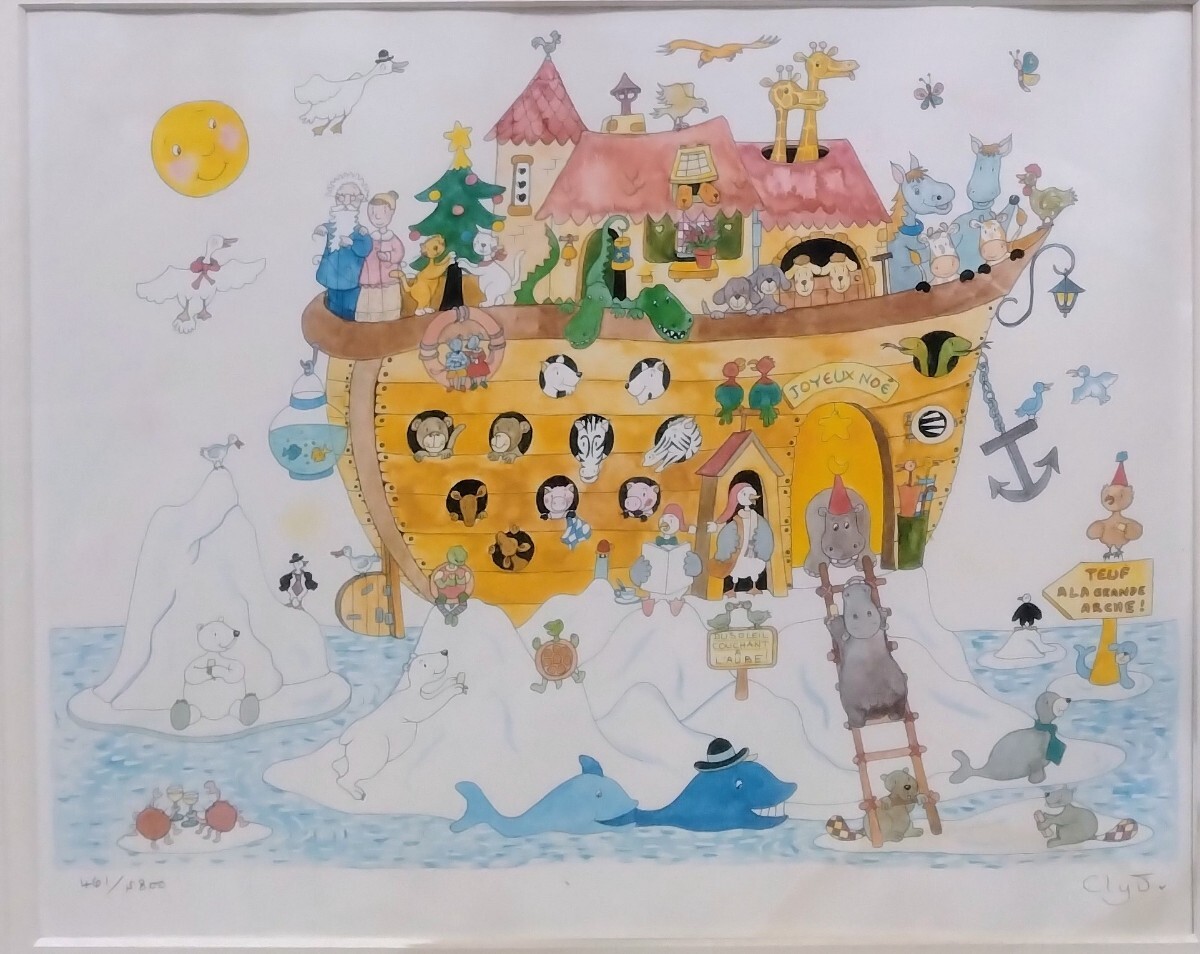> 【真作】クリーブ Clyv「 ノアの箱船」461/s800 ジクレー版画 ダイヤモンド・スクリーニング 直筆サイン 額縁 額装 フランス人作家
