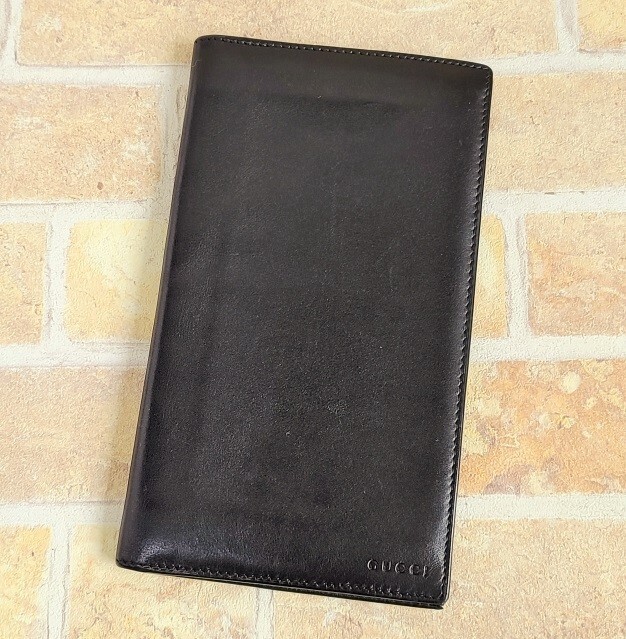 > オールドグッチ ヴィンテージ レザー 長財布 長札入れ ブラック イタリア製 GUCCI グッチ 札入れ