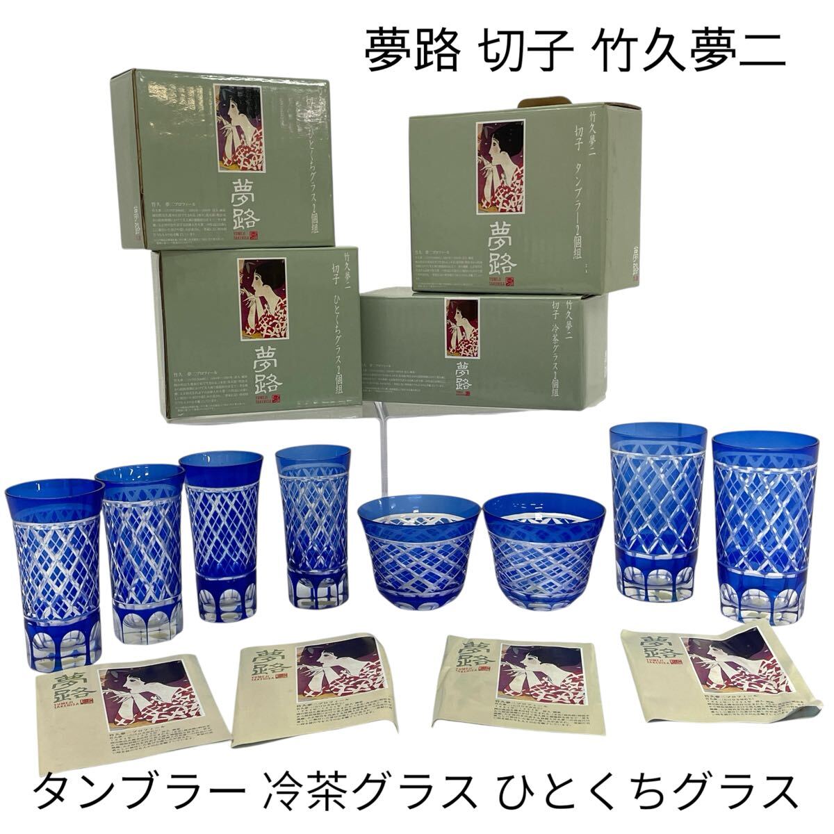 - 竹久夢二 切子 タンブラー 冷茶グラス ひとくちグラス [夢路]酒器 伝統工芸 ブルー 青 ペアグラス 箱付【未使用】 #0699-024B2