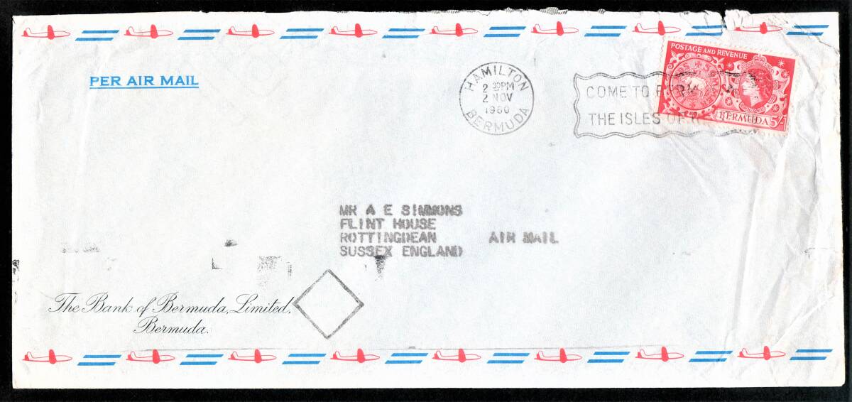 - 英連邦 バミューダから1960年差出し英国宛の実逓エアメール 1通 【説明参照】