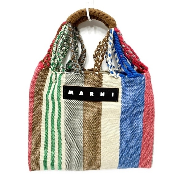 - マルニ MARNI トートバッグ SHMH0009M0 ミニ ハンモック バッグ レザー ベージュ×ブラウン×マルチ ストライプ 美品 バッグ