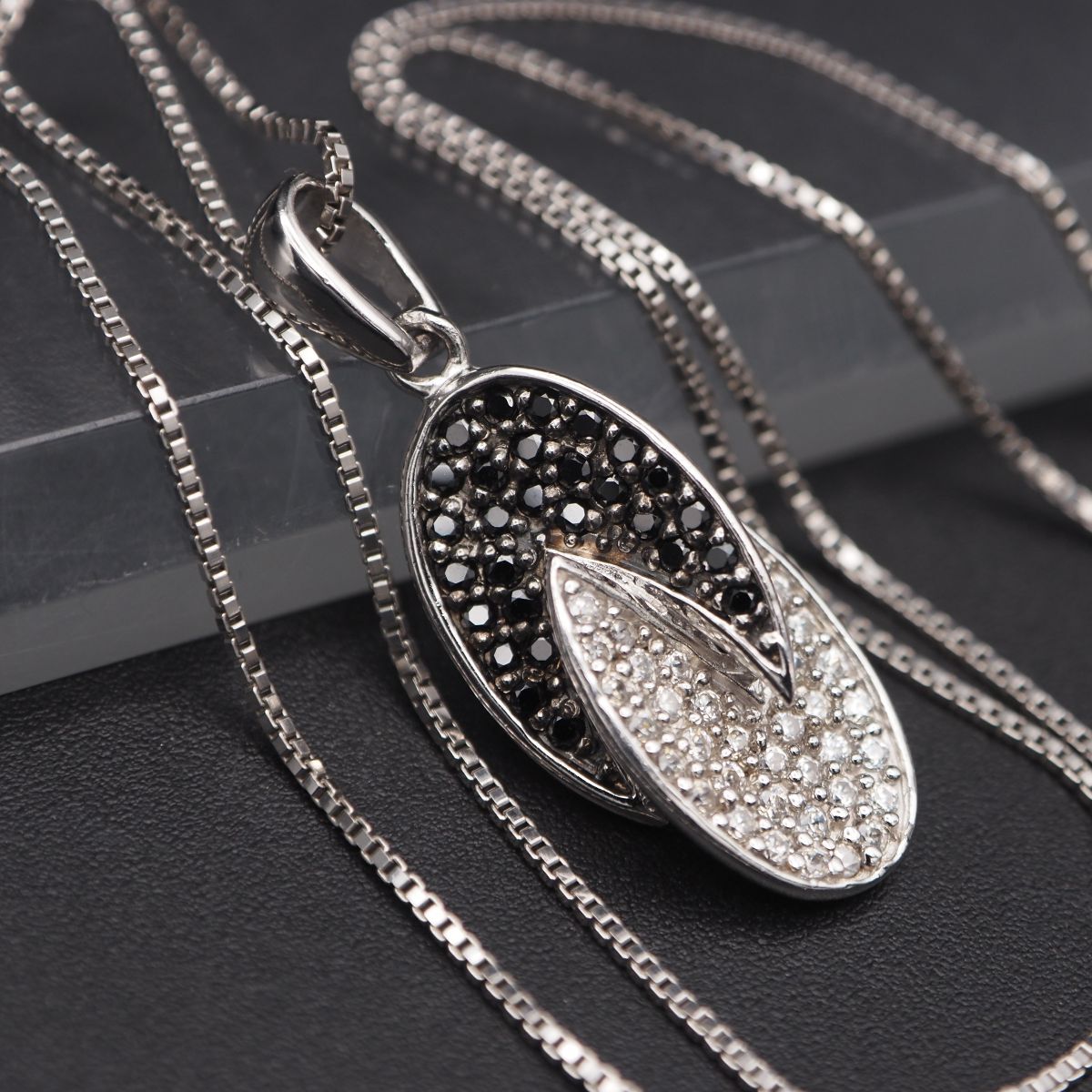 - G451 オニキス ダイヤモンド風 925 ITALY刻印 ペンダント ネックレス ラインストーン パヴェ デザイン シルバー