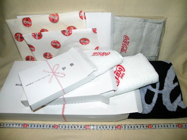 - x品名x 年代物コカ・コーラ非売品 大判~小/刺繍ロゴタオル各種+エプロン=まとめ売りセット!未使用/保管品♪コカコーラ取引先用?ノベルティ