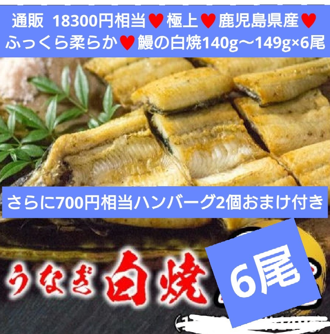 > ハンバーグ2個おまけ 鰻の白焼き 140g~149g×6尾 うなぎ 白焼き 蒲焼き 鰻の蒲焼 ウナギ