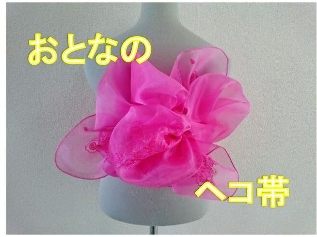 - 大人の兵児帯 オーガンジー ピンク刺繍 シンプル レディース 浴衣帯 メール便可 712