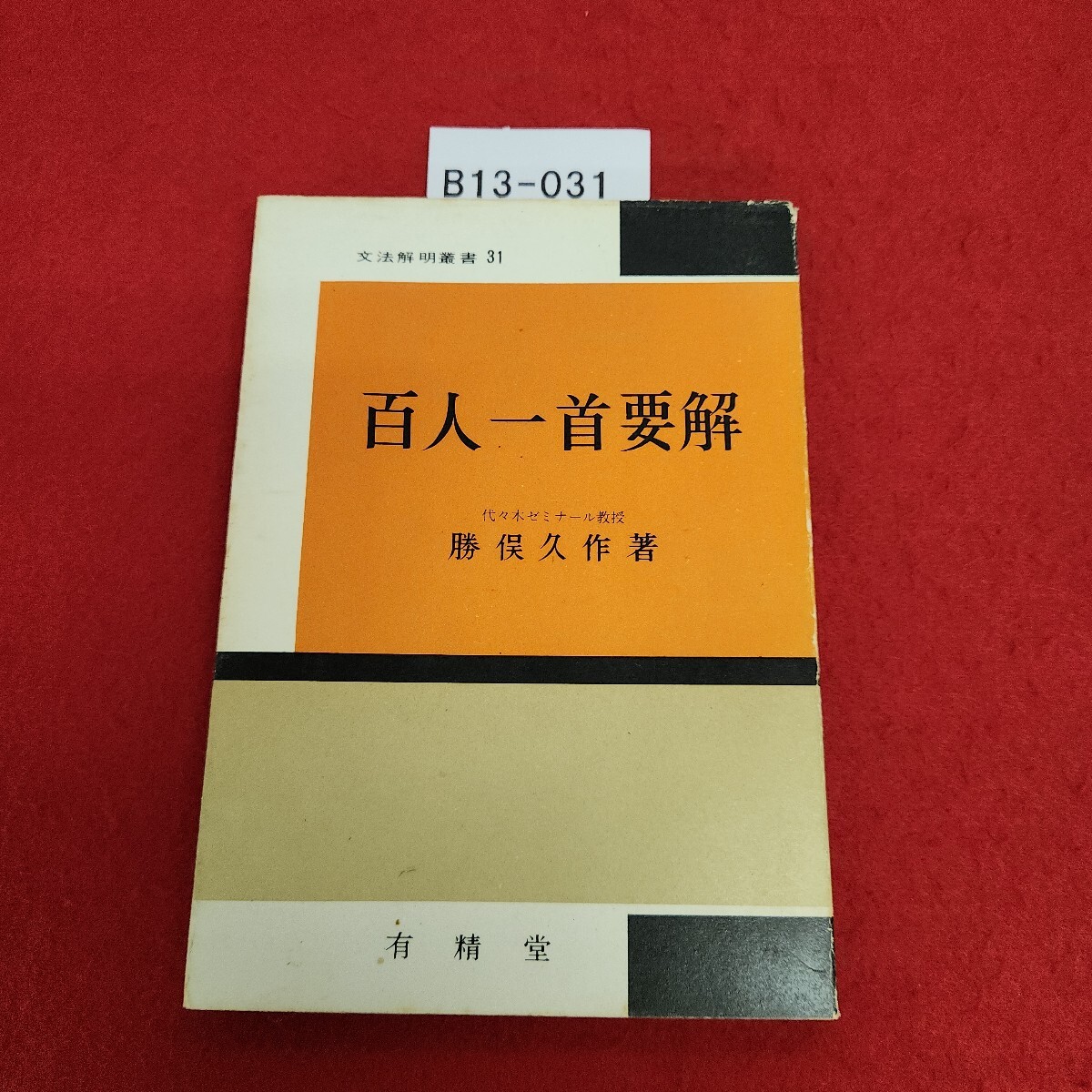 - B13-031 百人一首要解 勝俣久作著 31 有精堂 記名塗り潰しあり。